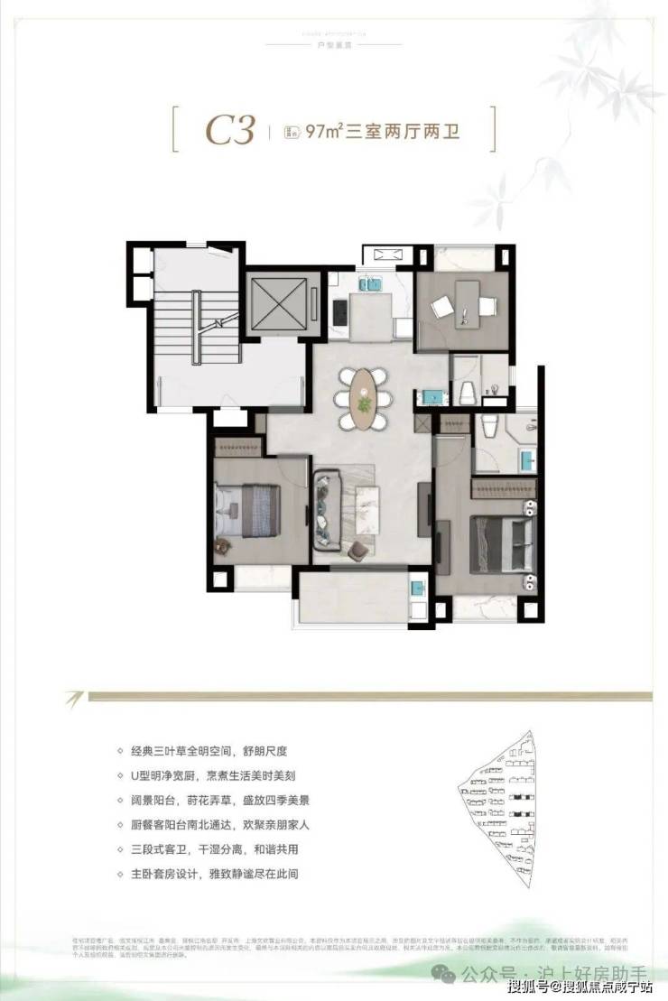 洋房(89-99㎡):三房两厅设计,得房率高,采光面宽,适合刚改家庭;