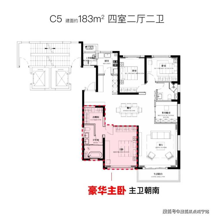 建面约183㎡4房2厅2卫户型: