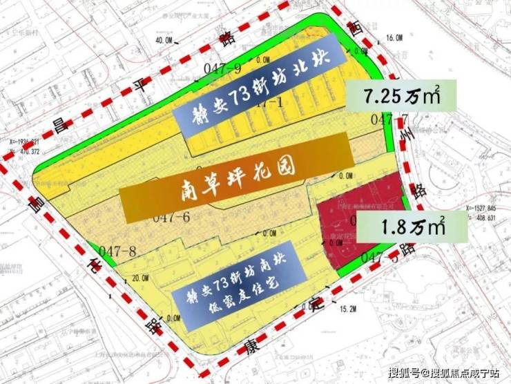 静安73街坊项目共分为南北两个地块,中间被现有的住宅隔开。