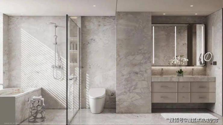 比如入户玄关臻选白雪公主奢玉,以玉的温润质感装点归家的门庭礼序。主卫次卫均做到全明设计,臻选意大利进口帕里斯灰奢石,臻选美学金属镜柜嵌入美妆冰箱,完整的隐藏洗漱收纳配置,让生活的舒享,融汇在家的每一个细节中。