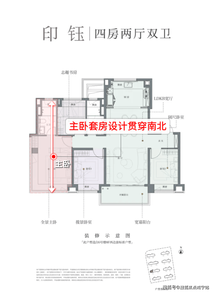 同时南北通透+南北双飘窗,彻底将主卧小家化,通风采光、舒适度尺度感都碾压同面积段其他竞品!