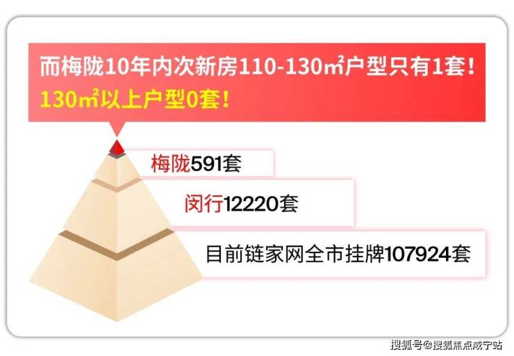 目前链家网全市挂牌107924套,闵行12220套,梅陇591套,而梅陇板块10年内次新房110-130㎡户型的挂牌只有1套!130㎡以上户型更是零封,1套都没有!