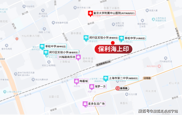 其次是教育,闵行实验小学和莘松中学是闵行公办的优质学校,与保利海上印几乎是门对门的距离。