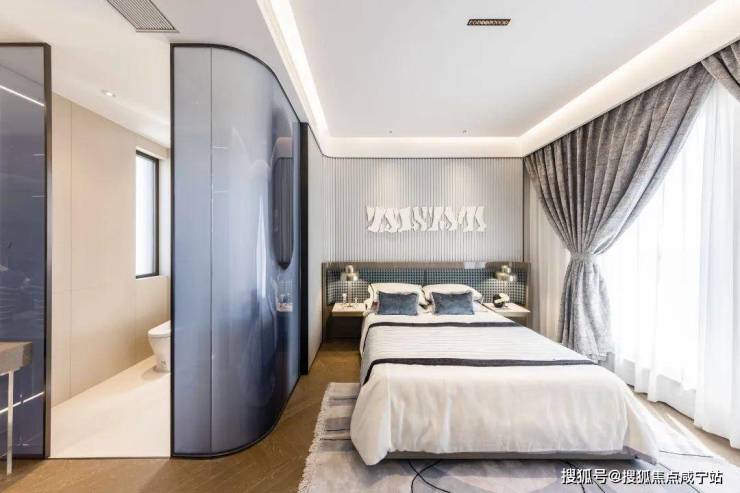 主卧套房:270°拐角飘窗,直面冬涟河湿地,阳光满格