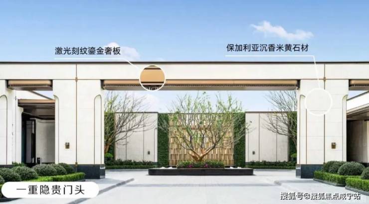 第一重隐贵门庭,约1000平的入户花园和约50米宽6米高的高奢门头,恢宏大气!整体立面是精选保加利亚沉香米黄石材通体干挂,配合香槟金的铝板进行点缀,豪宅归家仪式感瞬间拉满!