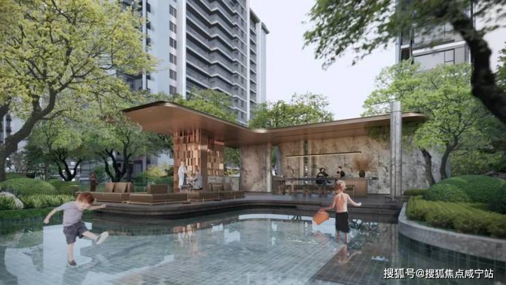以及我个人很喜欢的10#,楼下就是社区唯二的架空层!以及与架空层相连的核心功能区无界水院及鎏金水岸!南向望出去即可一览社区极致典雅的核心景观!
