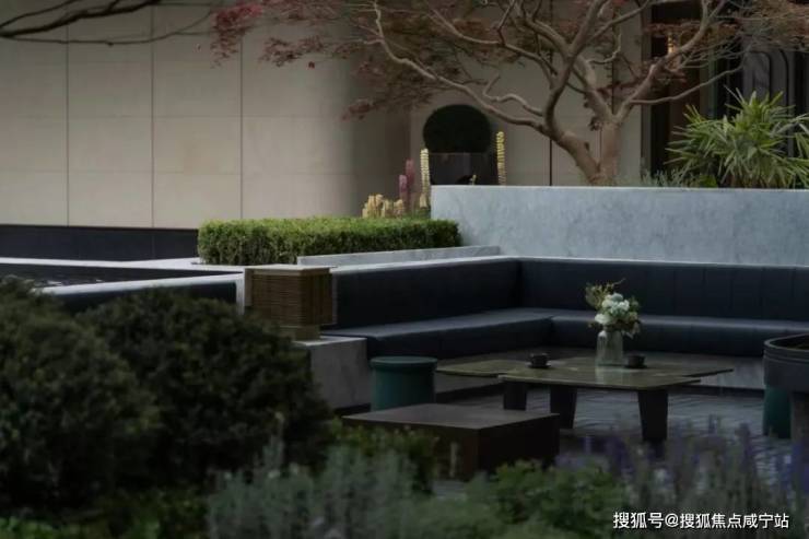 二重隐逸车马院,以安达仕酒店为灵感进行的空间规划,打造星级酒店式归家落客区!全冠移植的朴树,达到了50年以上的树龄。底座黑金花哑光石材,搭配金属线条收边,低调奢华!