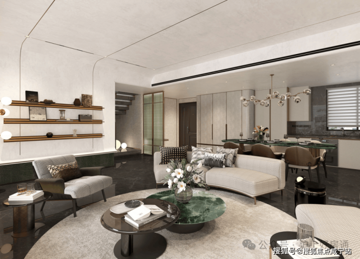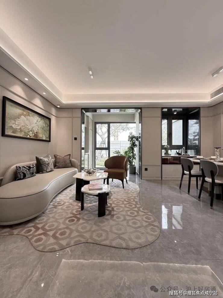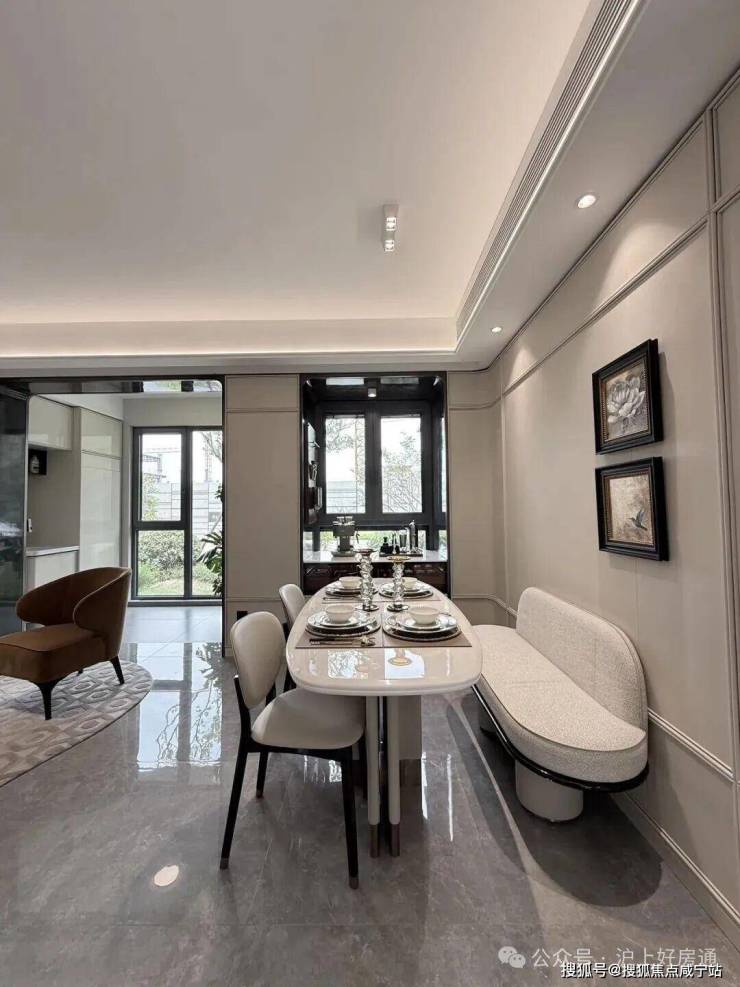 项目外立面采用“新中式现代”风格,汲取江南水乡的建筑元素,以浅灰色调为主,搭配深色金属线条和局部木纹格栅,既有传统建筑的韵律感,又符合现代审美。社区整体规划采用“一轴三进九景”的中式园林格局,从社区大门到宅间院落,层层递进,营造“入院-穿巷-归家”的东方礼序。