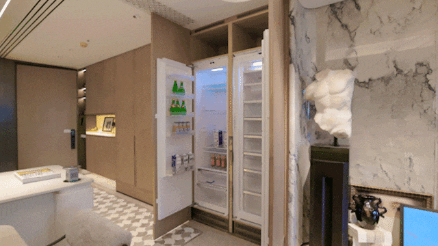 :岩板背景墙、全屋净水、智能门锁、收纳系统。