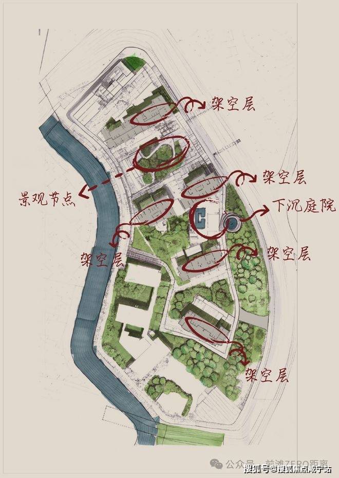 超高的架空层,将社区内核心景观视野,尽收眼底,不断洄游且连续的漫步动线,视觉形成了连续的感官通廊,视觉和路径上,对于景物的情感,连续不断,且移步异景。