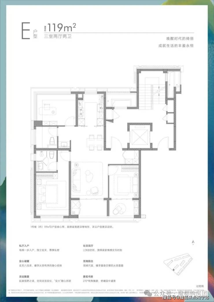 项目首推建面约117-139㎡3-4房,你想要的“类独立电梯厅”、“双阳台高实得率”、“大面宽”、“270°灵动飘窗”等应有尽有。