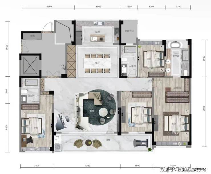 其中空间超160㎡的大方厅,涵盖客餐厅+中西双厨+独立茶室,是全家人的互动空间。