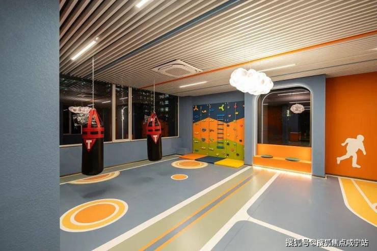 有专为小业主打造的童玩空间,配置色彩明艳的积木桌、攀岩墙、海洋球等等,全然一个家门口的遛娃胜地。