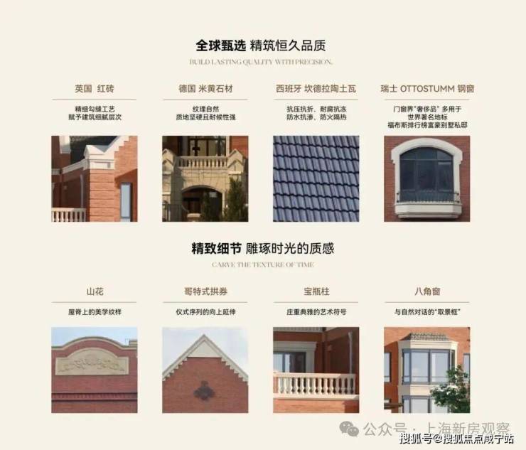 材料上:甄选英国、德国、西班牙、瑞士等多国进口材料,红砖采用精细勾缝工艺,石材、屋面材料经久耐用,同源上海檀宫的瑞士OTTOSTUMM钢窗等优质建材,打造历久弥新的建筑。