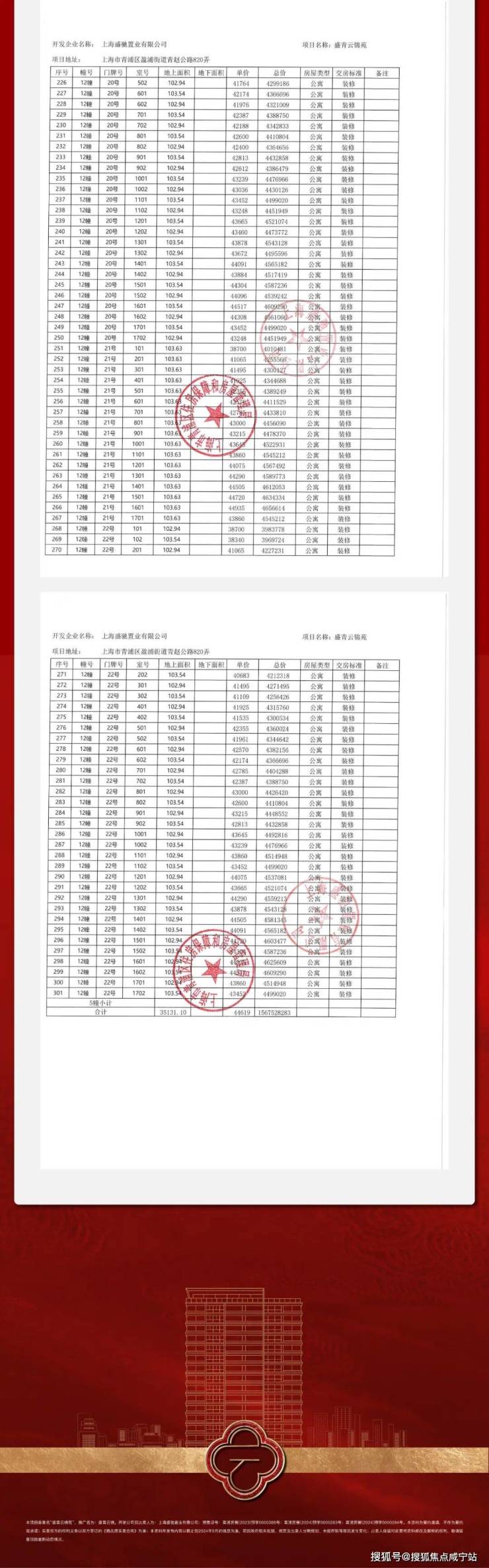最新消息,一房一价表发布!青浦新城「盛青云锦」建面约103-145㎡三房四房,均价4.45万/㎡!