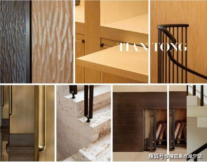 硬装上以木饰面和米色石材做结合,物料原始肌理感,表达经历时间后的沧桑痕迹。大理石地面镶嵌精致金属条,保留材质的原始感,木饰面配柔和灯光,调和出安宁澄澈的归家氛围。