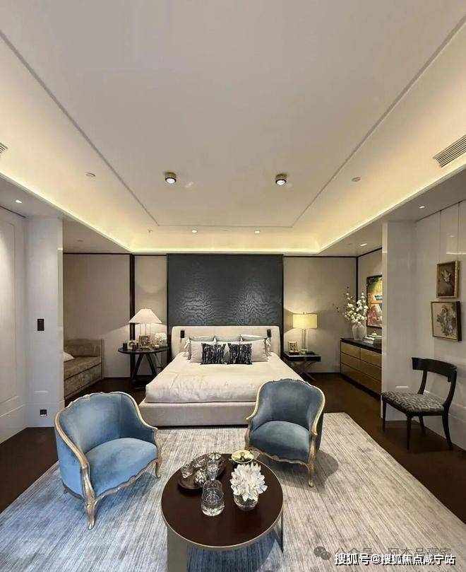 空间布局以满足日常需求为主导,休憩、梳妆、阅读,各功能区划分清晰,同时增加了与户外景观的联动,引景入室,内外呼应。