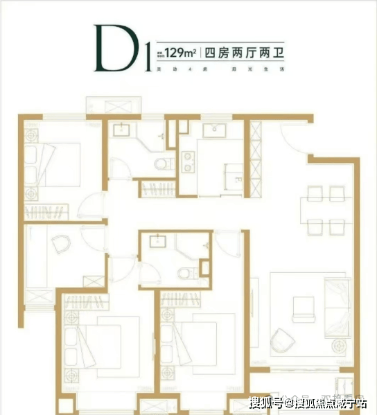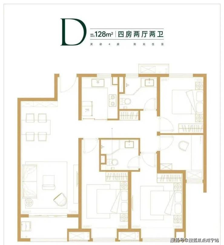 建面约128㎡四房两厅两卫