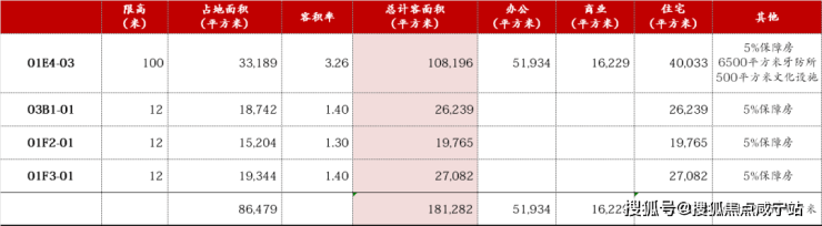 其中,01E4-03地块(平凉街道8、9街坊)规划方案已公示,占地面积33189方,容积率3.26,总建面176334方,地上计容建面108196,地上不计容建面8704方,地下建面59434方。拟建5幢15~17F高层住宅及大规模商业建筑。
