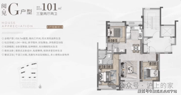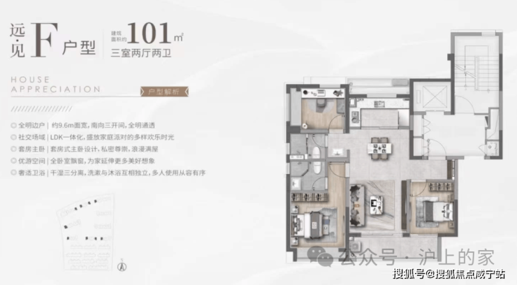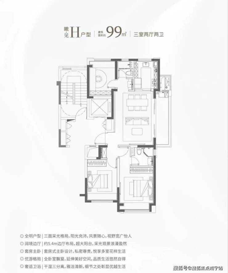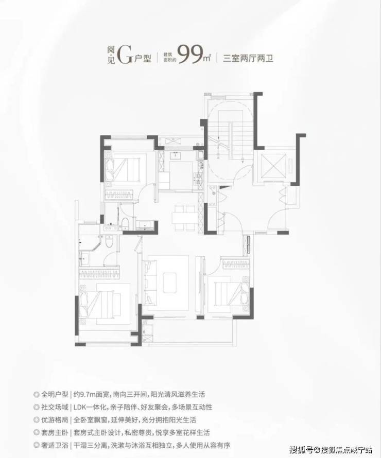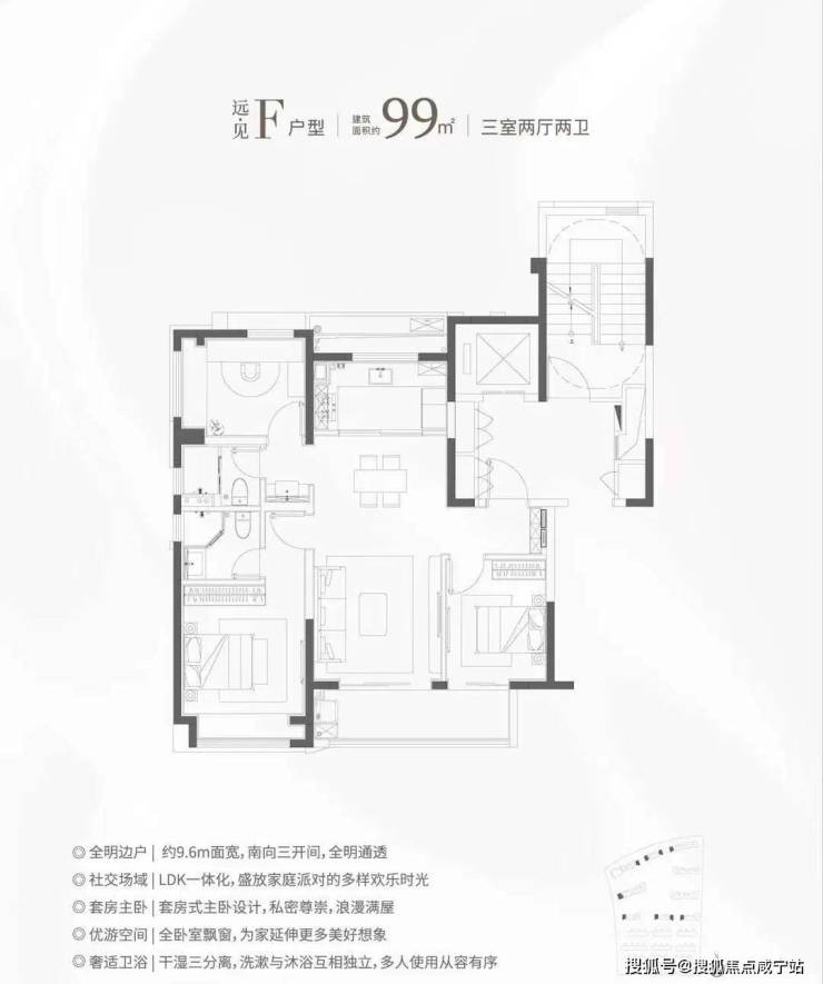 核心亮点:三开间朝南+双卫配置