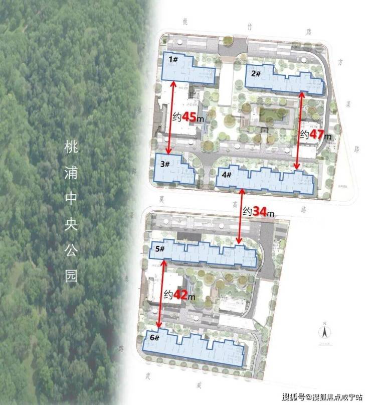 项目整体规划6栋小高层,以低密度布局营造舒适宜居氛围。楼间距约34-47米,远高于同类项目标准,不仅显著提升了室内采光与通风效果,也为中间及东侧户型留出了宽阔的视野通廊。