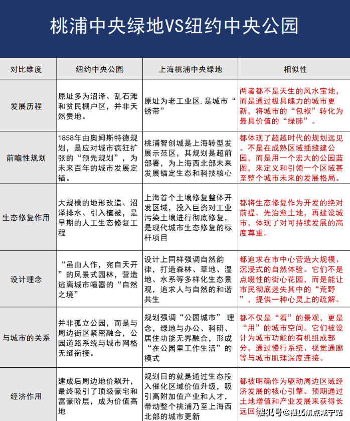 而桃浦中央绿地和中央公园有着相似的发展路径。
