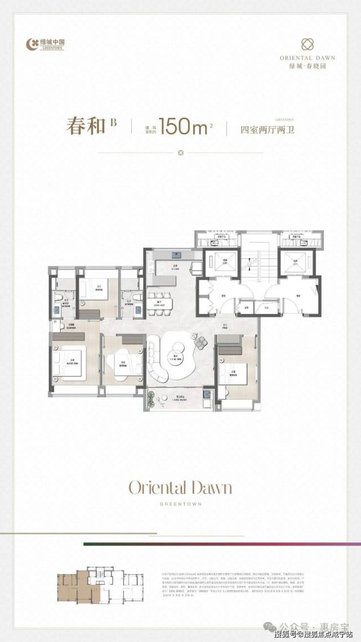 青浦绿城春晓园位于青浦区徐泾镇核心板块,紧邻17号线徐云路站,是大虹桥区域的高端住宅代表。项目总占地约3.3万平方米,容积率2.2,绿化率35%,打造低密度、高舒适度的居住环境。目前主推100-150㎡三至四房户型,均价约60910元/㎡,总价580万-650万。