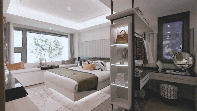 套房式主卧带有衣帽间及独立卫浴,打造了更丰富、更灵动、更轻奢的酒店式空间体验,为生活的精致体验感充分考虑。