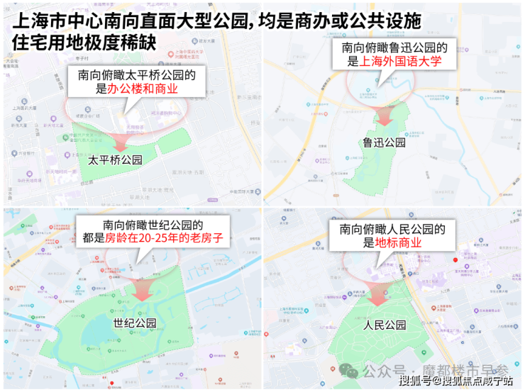 公园边界有限: 公园的周长是固定的,能真正“直面”公园(而非斜视、侧视、有遮挡)的土地面积极其有限