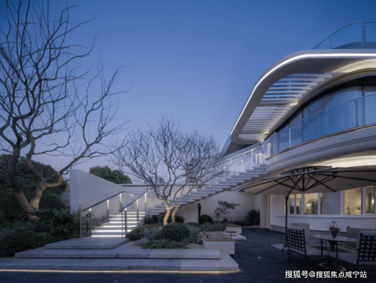 下沉庭院中央铺设串联空间的轴线水景,采用意大利建筑师斯卡帕标志性的跌级设计手法,通过极致的东西轴向对称构图,构建出融合古典秩序与现代艺术的标志性景观。