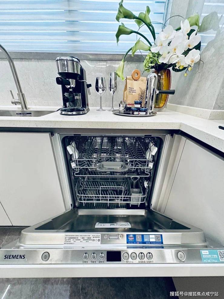 划重点:大金中央空调+地暖+百朗新风;全屋墙布交付,比市面上常见的墙纸或乳胶漆,高出一大截;客厅背景墙看上去厚重且有质感;厨房预留双开门冰箱位置,配置西门子烟灶+嵌入式洗碗机;卫浴采用高仪品牌……