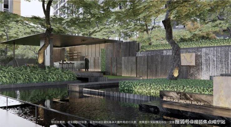 项目的中央核心庭院通过廊架、叠水、绿化围合形成静谧舒适的庭院空间感受,让业主们能够将家的空间延展至户外。
