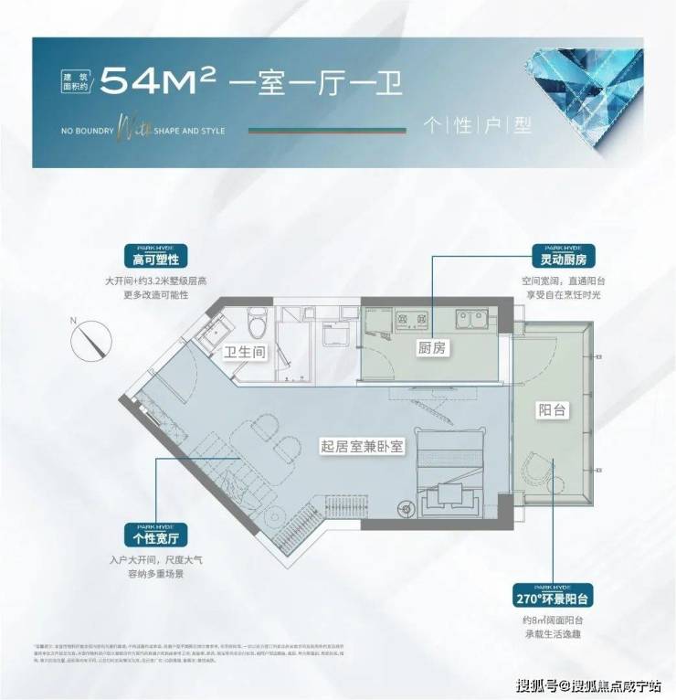 激发无限灵感,演绎独特自我。公园海德建面约54㎡个性户型,为城市独具品位者带来生活新向往。