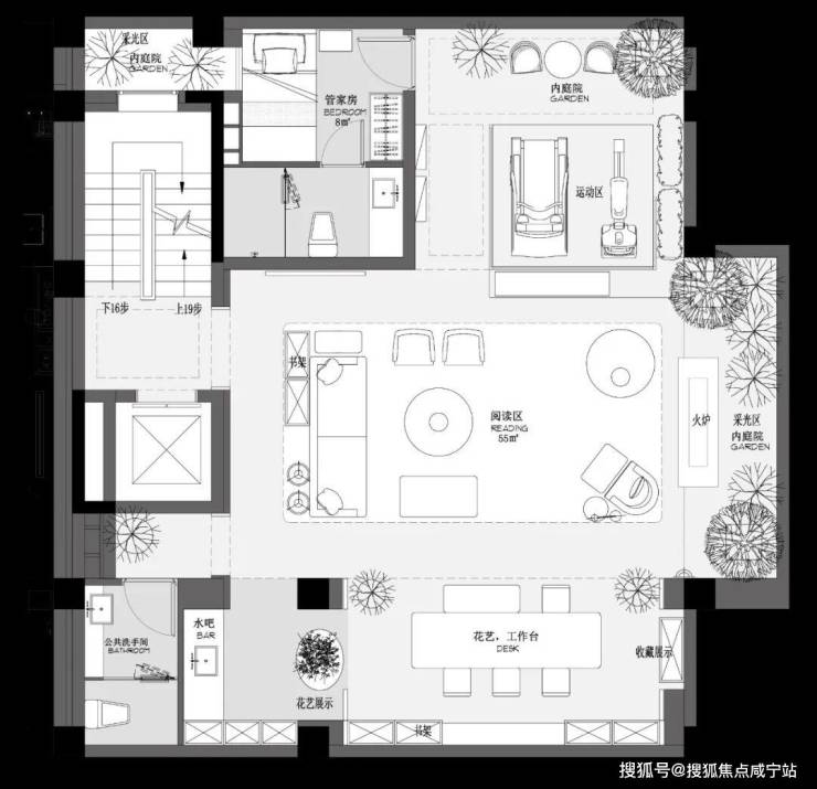 弘安里的院子,投影面积约65㎡的露天大庭院与约20㎡的小南院,高度分别为4.5米和3.7米的院墙围合,向天空敞开怀抱,将私密揽进胸怀,特别着重打造的双墙工艺,再加一重家人生活隐私的保护。