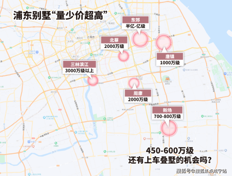 小胖君标注了近两年浦东有别墅供应的区域,外环内基本2000万起步,唐镇1000万级,甚至你买到新场都要700-800万级。