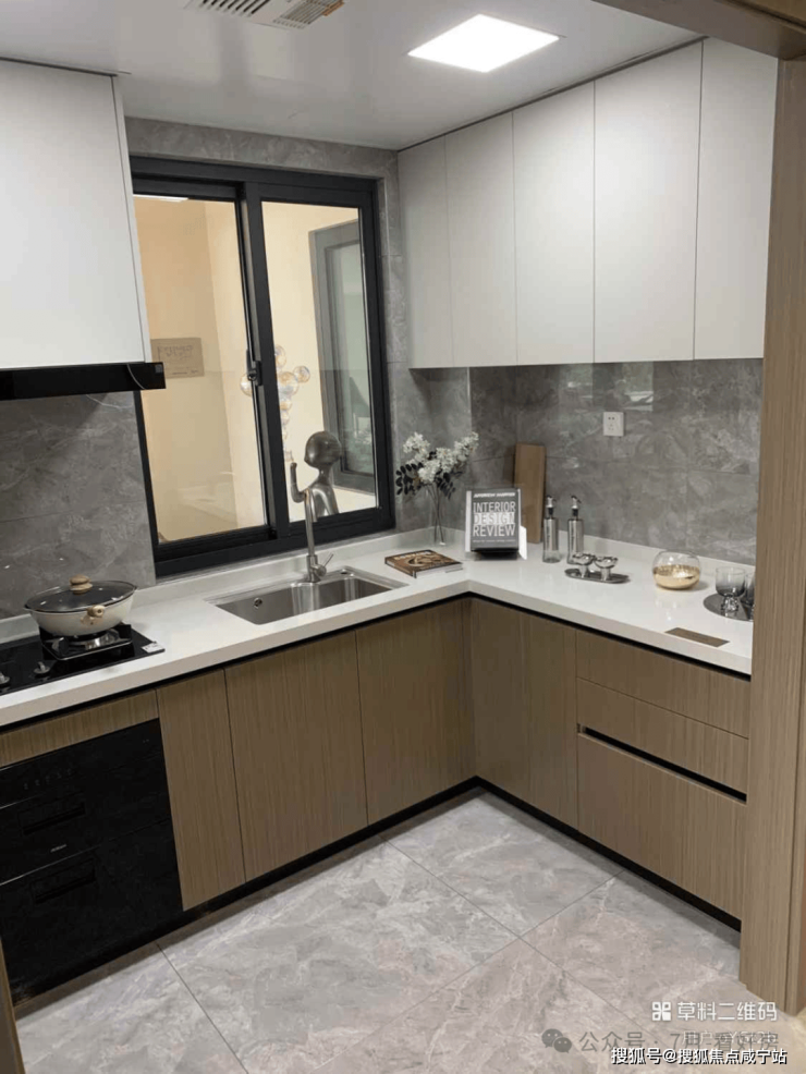 厨房L型操作台,动线流畅。