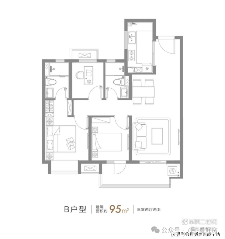 ,可以说是刚需置业一步到位的户型,从二人世界到二胎家庭的全生命周期需求都能满足。