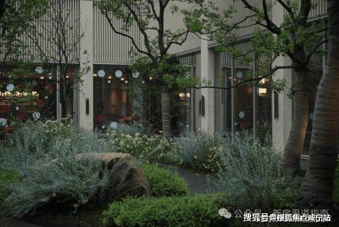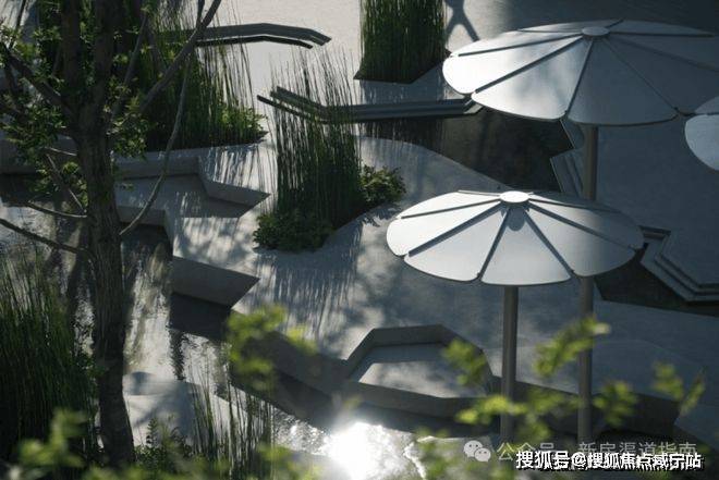 步入社区,首入眼帘的是约6米高水幕的下沉式山水庭院,与周围建筑融为一体,将自然与松弛感带给社区。