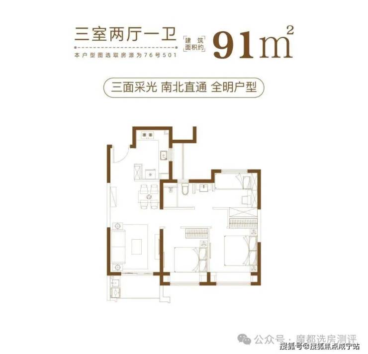 建筑面积约84-101㎡瞰景高层,方正格局,正向朝南,采光性和通风性都非常优秀;动静分离、干湿分离更是不在话下;而且推窗便能看见高尔夫绿洲,视野极为优越!