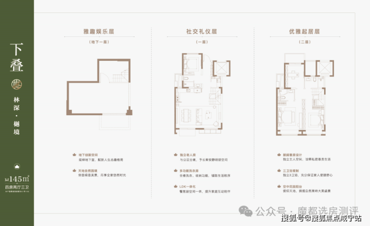 建筑面积约91-144㎡ 低密叠墅(复式住宅),则为改善置业者提供了新的选择。庭前一方天地、巨幕宽厅、星空露台、地下空间,称得上是城市墅居的理想范本!