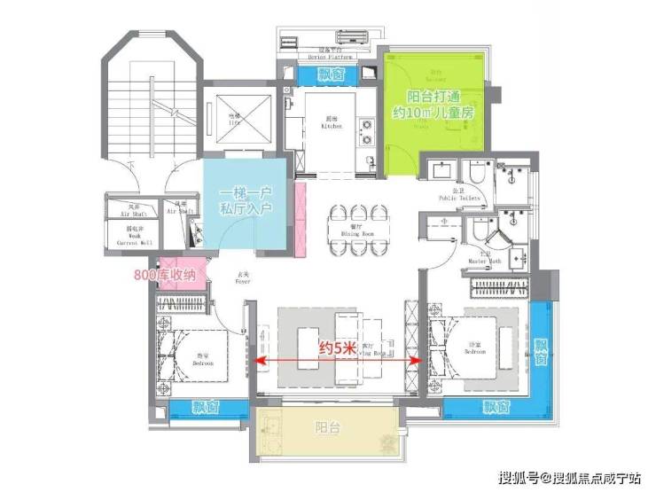 独立入户玄关+800库收纳,约5米面宽横厅,南北直通;