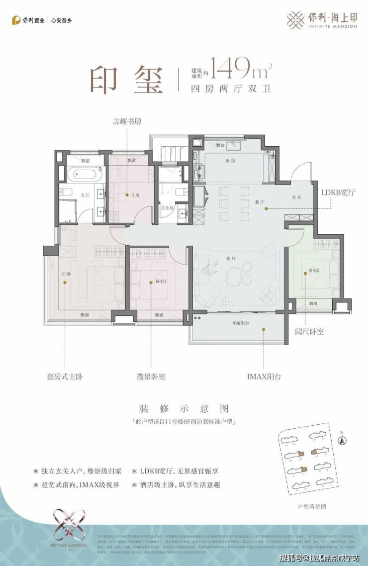 保利海上印主打建面约108-149㎡3-4房,在户型上,项目已经做到了突破常规: