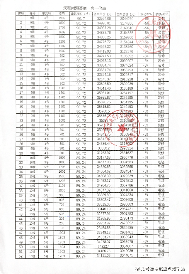 项目一房一价:
