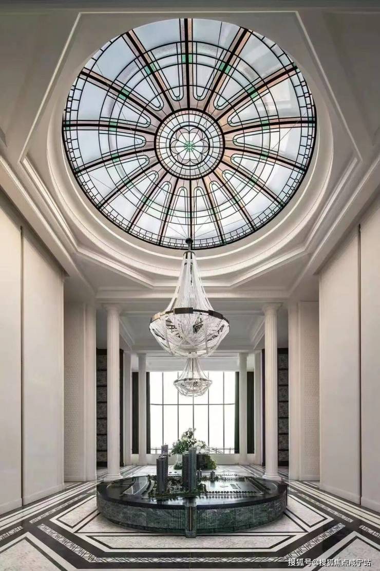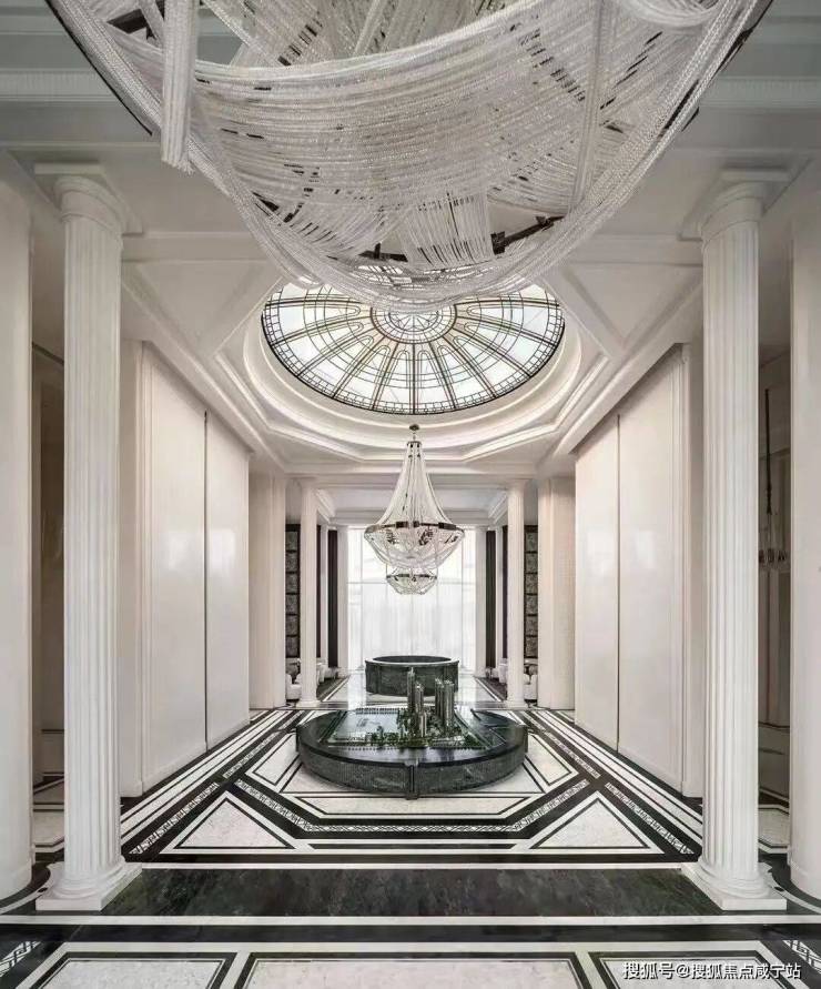 其中,星空顶泳池用纯天然优质石材打磨的罗马柱点缀。这不仅仅是一个活动空间,更是一个艺术的门庭,让业主足不出户尽享法式惬意优雅。