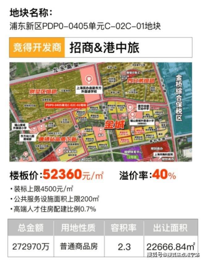土拍重磅新闻——7月25日上海六批次土拍结束,唐镇地块再次赚足市场眼球!经过62轮鏖战,最终由招商&港中旅以总价27.3亿,楼面价5.24万元/m²夺得!溢价率突破40%!!!未来售价预计将突破9万/m²,已迎来价值爆发窗口期!