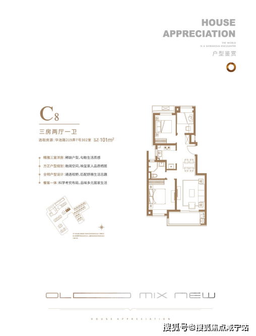 户型设计灵动,目前开放了104㎡3房2厅2卫和103㎡3房2厅2卫样板间,可谓是各有看点: