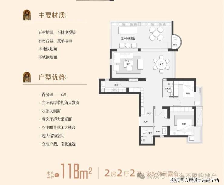 118㎡2房2厅2卫+25㎡室外休闲露台 东北 850万