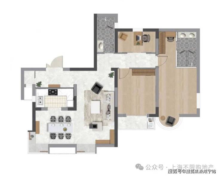 错层户内不同功能区楼面高度存在 30-60 厘米落差,通过小型楼梯连接,既区分空间(如客厅与餐厅)又不割裂整体,适合中大户型,小户型采用易显局促。
