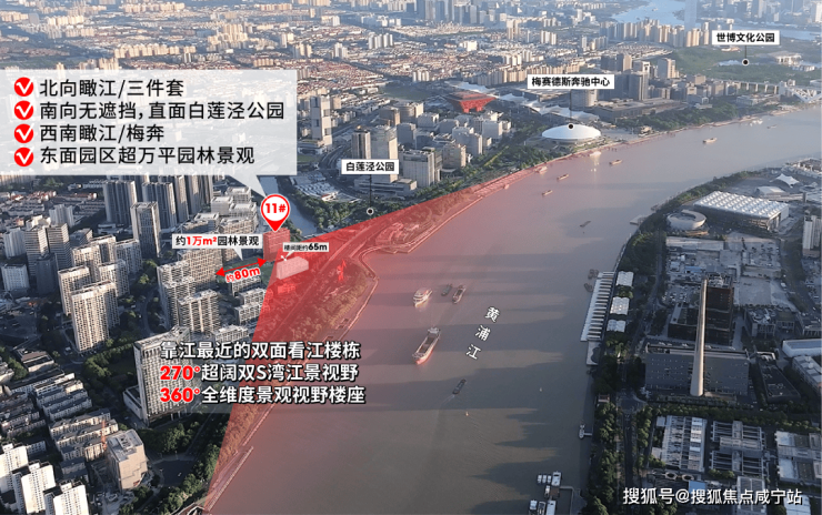 ② 360°全维度景观视野楼座:北向瞰江/三件套、南向白莲泾公园、西面瞰江/梅奔、东面园区超万平园林景观!