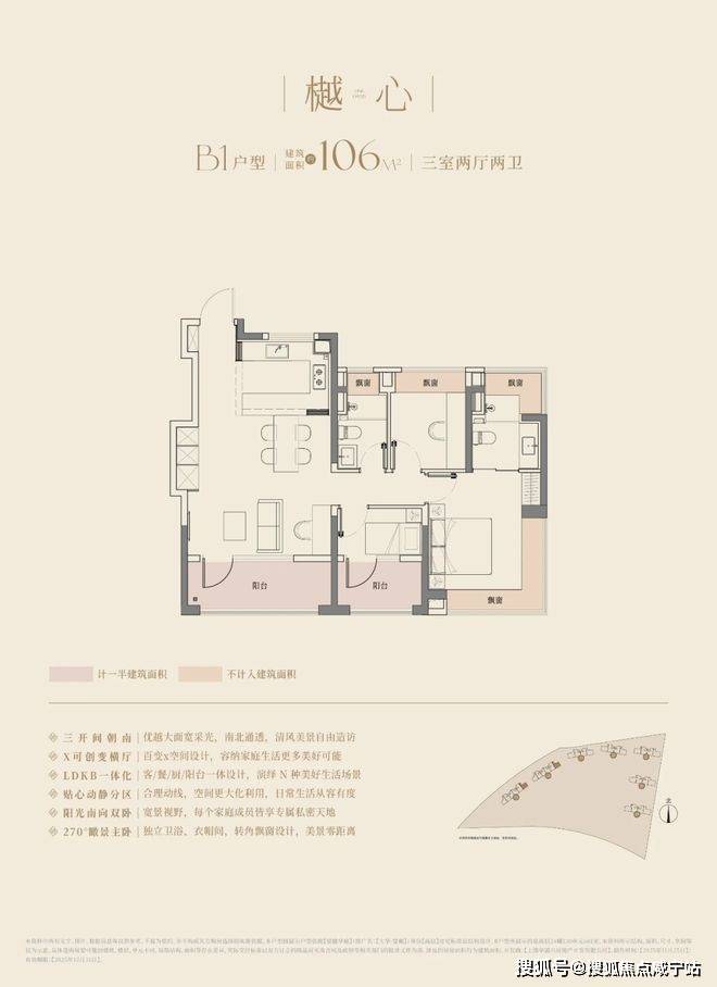 大华·望樾售楼处电话:400-8800-703📞建面约106㎡的三房两厅两卫,3.5开间朝南,南向面宽达到约11.8m!碾压市面上以前的三开间朝南、10米面宽的三房户型。2个朝南阳台+多飘窗,进一步放大了实用空间。其中主卧和主卫双270度转角飘窗,将通透感展现得淋漓尽致。业主日常推窗,享受愉悦美景。